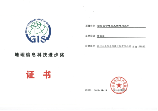 地理信息科技進步獎---湖北省智慧國土構建與應用一等獎